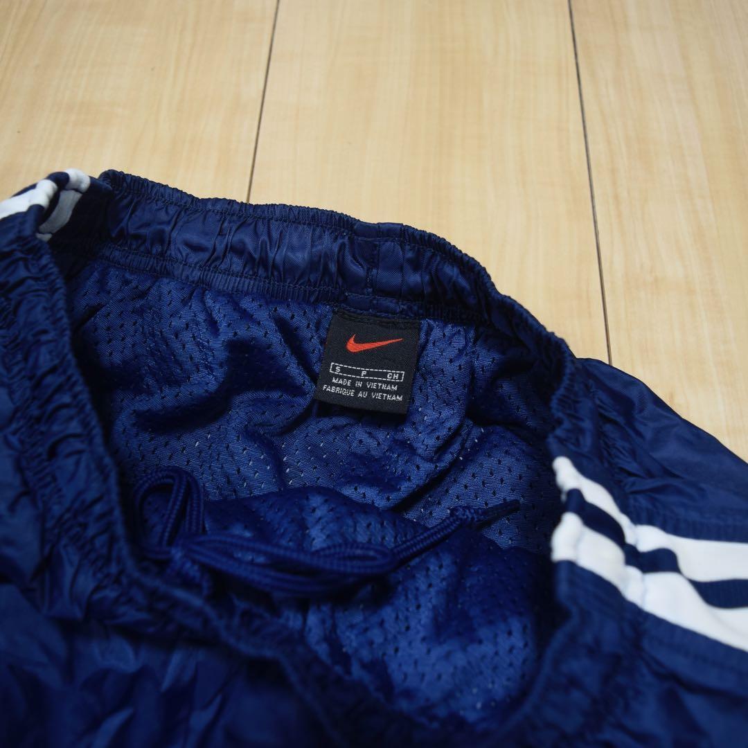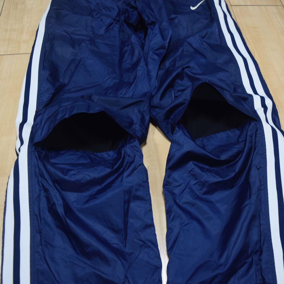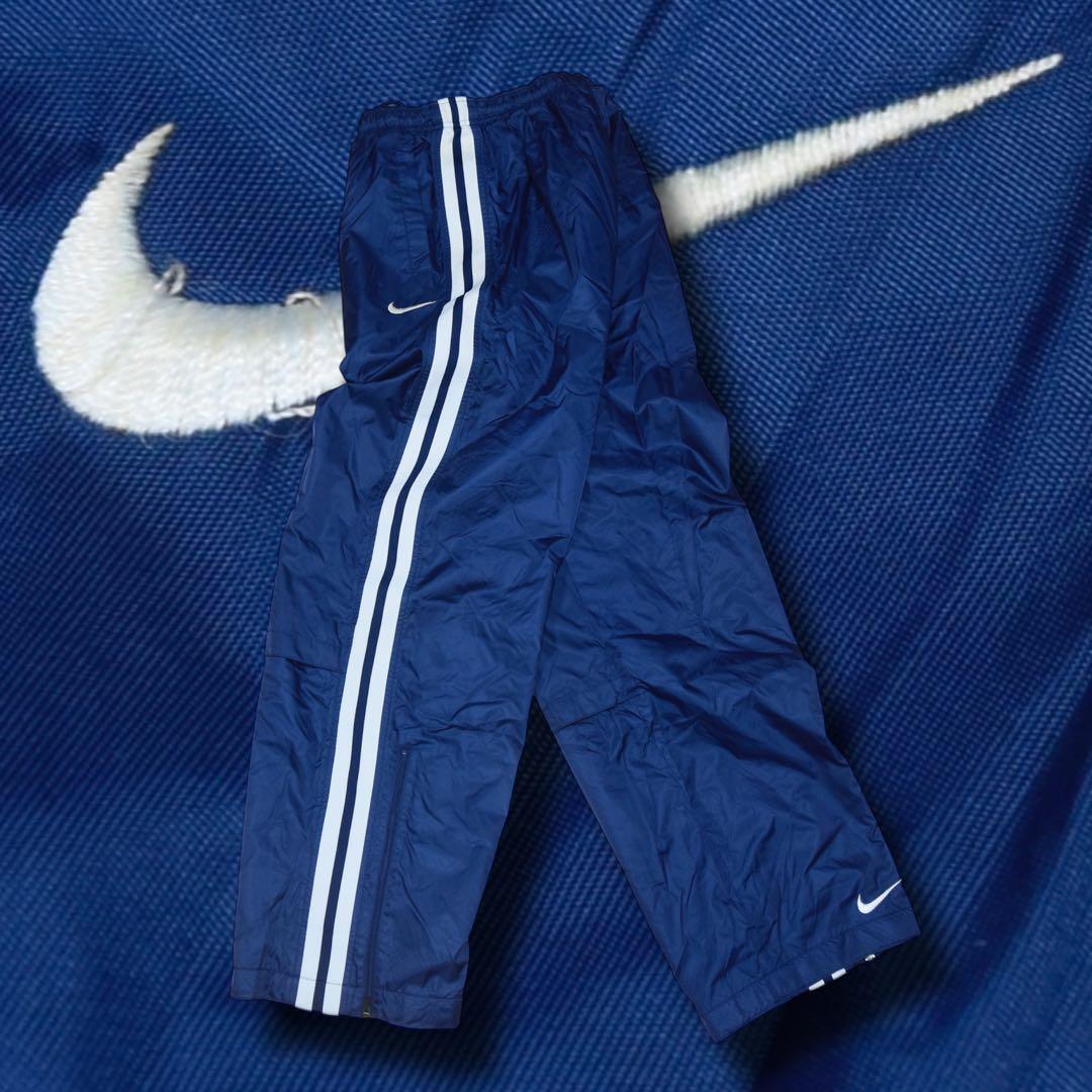 90s NIKE 中綿ナイロンパンツ ネイビー サイドライン 裾ジップ テック系