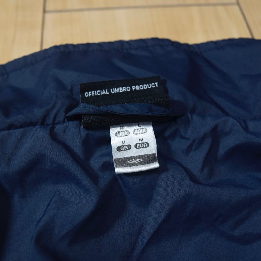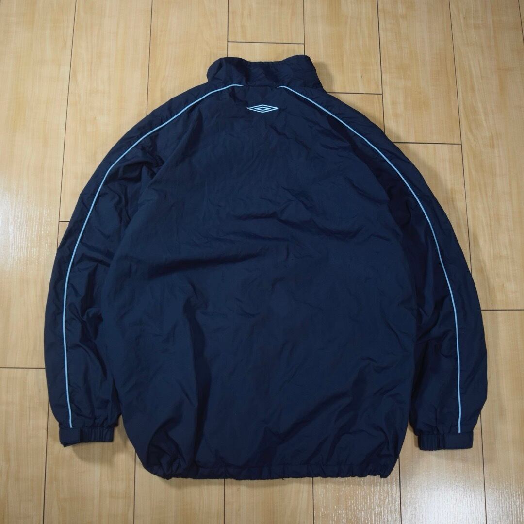 00s UMBRO ナイロンジャケット 両面刺繍ロゴ パイピング ネイビー